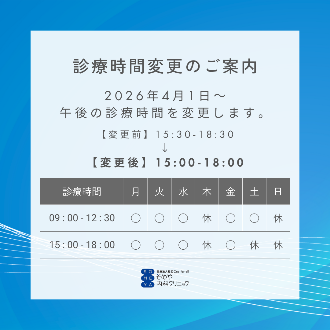 このたび、2026年4月1日(水)より午後の診療時間を変更させていただくこととなりましたので、ご案内いたします。